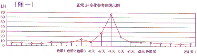 图一为一张排卵完全正常的图示。 以排卵的当天为 0 天,卵泡发育初期 LH 值在 5-10IU/L 之间波动,随着卵泡的发育,在-2 天时 LH 值上升为 20-25IU/L;-1 天时,LH 突然升至高峰,峰值在 50-100IU/L 之间,其高低与每个人排卵的时间的不同而不同;达到峰值 24 小时内排卵。在排卵当天(0 天),绝大多数降到 10-25IU/L 之间,+1 天均降到=10IU/L。 精确预测排卵:用半定量 LH 试纸检测尿 LH 到约 20IU/L 以上后,可采用每 4 小时等时间间隔连续测定。尿 LH 曲线一般会先上升,在 LH 值出现维持不变下降时,即可基本判断排卵将在 24 小时以内发生。