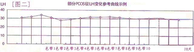 图三为 LUFS 征(卵泡黄素化)的图示。 随着卵泡的增大,尿 LH 缓慢的增加,LH 值一直在 25-50IU/L 之间波动,无峰值出现,中低水平的 LH 可维持 5 天左右,同时黄素化的卵泡不断地长大。与正常排卵时尿 LH 值上升的陡峭高峰状曲线完全不同。